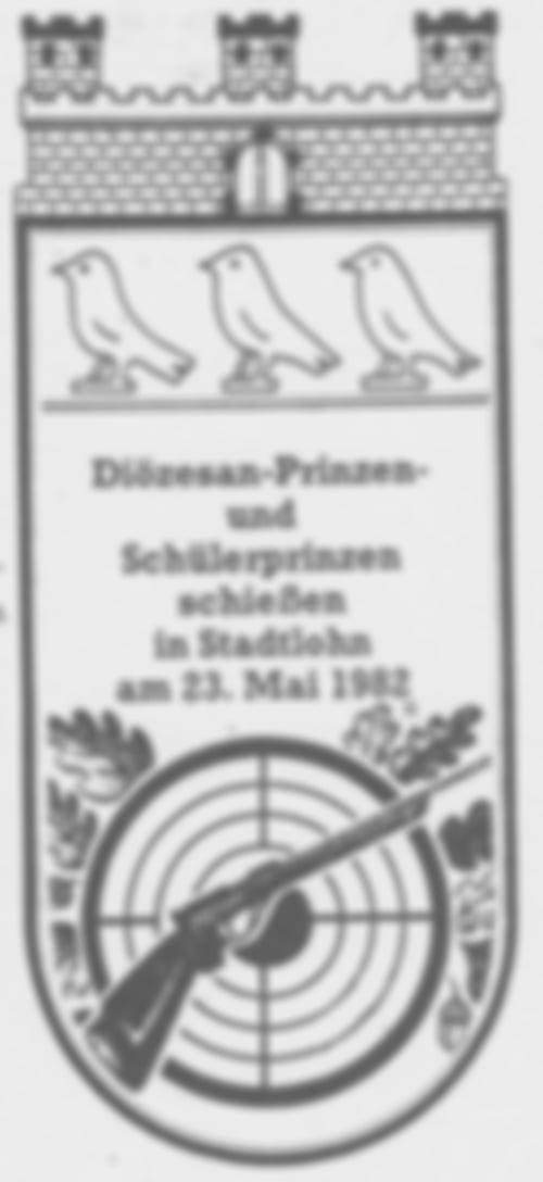 Nachdem 1964 in Stadtlohn die ersten Diözesanjungschützentage überhaupt stattgefunden haben, kam dieses Fest 1982 erneut zu uns. Festsymbol Festsymbol der Jungschützentage 1982 in Stadtlohn Wenn jemand fragen würde: „Wie kommt ihr eigentlich an die Durchführung dieses Diözesanprinzenschießens?“ dem müsste man Antworten: „ Durch die vielen guten Leistungen wurde der Name `Schießsportgruppe St. Otgerus Stadtlohn` überall bekannt“ So wurde der Vorsitzende der Schießsportgruppe, Peter Doods, gebeten dieses Event zu übernehmen. Hierfür brauchte er dennoch die Hilfe des gesamten Schützenvereins. Oberst Alois gab die Zusage und wir übernahmen damit eine für uns ungewöhnliche Aufgabe. Die ersten Gespräche fanden schon im Herbst 1981 statt. Unsere Gesprächspartner beim BdSJ Diözesanverband in Münster waren: Winfried Janßen (Diözesanjungschützenmeister), Manfred Niemann (Landesbezirksjungschützenmeister, momentan ist der Otgerus Schütze Tim Winking in diesem Amt), Willi Oberstadt (Landesbezirksbundesmeister), Bernd Friese (Diözesanschießmeister). Diese Schützenbrüder hatten schon mehrfach in Münster die Diözesanjungschützentage durchgeführt.