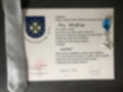 Am 17.08.2019 wurde Tim Winking durch den Ritterschlag in die Gemeinschaft des Ritterordens aufgenommen. Hier findet man die Urkunde dazu. Unterzeichnet haben sie: Als Großmeister SKuKH Karl von Habsburg-Lothringen, als Prior: Charles-Louis Prinz von Merode, und Peter Olaf Hoffmann als Kanzler des Ordens.